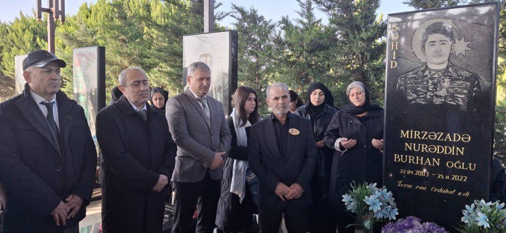 Bu gün şəhid Nurəddin Mirzəzadənin anım günü idi. Onun şəhidlik mərtəbəsinə ucalmasının 3 ili tamam oldu. Anım günü ilə əlaqədar N.Mirzəzadənin dəfn edildiyi Dədə Qorqud qəbiristanlığındakı məzarı ziyarət olunub. Şəhidin məzarına tər qərənfillər düzülüb. Ruhuna dualar oxunub. Suraxanı Rayon İcra hakimiyyətinin nümayəndələri, şəhidin yaxınları, şəhid ailələri, qazilər, oxuduğu 104 saylı məktəbin şagirdləri və digərləri 19 yaşında Kəlbəcərdə xidməti vəzifəsini icra edərkən 25 noyabr 2025-ci ildə şəhidlik mərtəbəsinə ucalan Nürəddin Mirzəzadəni yad ediblər. Məzarı başında barəsində fikirlər söyləyiblər, şəhidlərin hər zaman başımızın tacı olmasını qeyd ediblər. Şəhidin valideynlərinə Allahdan səbr və dözüm arzulanıb.