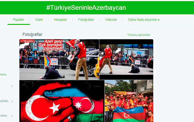 Türkiyə mediası və sosial şəbəkə istifadəçilərindən Azərbaycana xüsusi dəstək göstərilib. Türklər Tvitterdə #TürkiyeSeninleAzerbaycan haştaqı açıblar, bu barədə 50 mindən çox tvit atılıb.