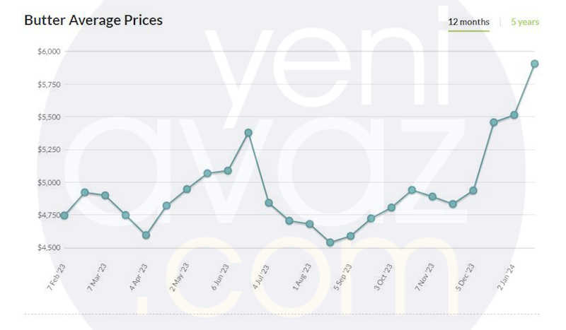 Qeyd edək ki, ötən ayın əvvəlində (5 dekabr) bu göstərici 4 936 dollar (1 kq 4,9 dollar və ya 8,3 manat) olub. Rəqəmlərdən də göründüyü kimi son bir ay ərzində kərə yağının qiyməti təxminən 21% artıb.