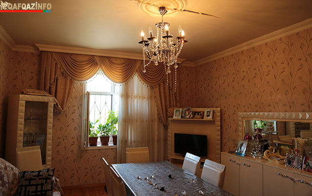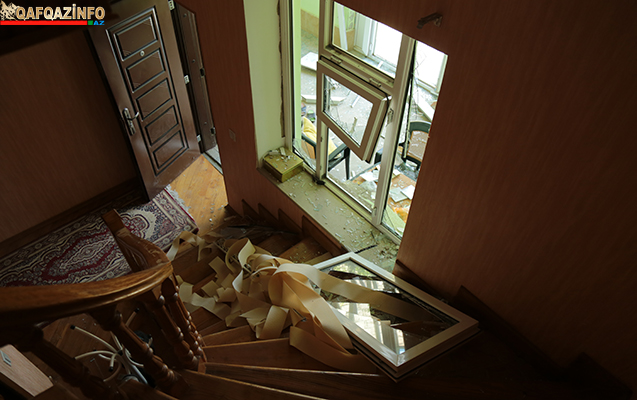 “Xoşbəxtlikdən ailəm hazırda rayondadır. Evin tavanı çöküb, hər yer şüşə qırıntısıdır. Dam örtüyü də tökülüb. Hazırda bu mənzildə qalmaq mümkün deyil”.